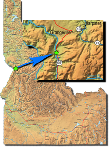 To get to Hammer Creek from Riggins, take U.S. 95 north along the Salmon River. About 30 miles out, just before mile marker 222, there are signs that read “Hammer Creek Recreation Area” and “Pittsburg Landing”. Take the next left. Follow the road down along the Salmon River about a mile until you come to a “Y”. Take the left fork, cross the bridge and follow the road another 1 1/2 miles to the Hammer Creek Recreation site. If you are coming from Grangeville, shortly after you reach the bottom of White Bird hill you will come to Hoot’s Cafe. The turnoff to Hammer Creek is about 1/4 mile thereafter.